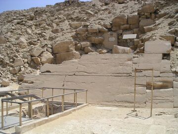 1. ^ Proposed dates for Unas's reign: c. 2404 – 2374 BC,[10][11] c. 2375 – 2345 BC,[12][13] c. 2356 – 2323 BC,[14] c. 2353 – 2323 BC,[15] c. 2312 – 2282 BC,[16] c. 2378/48 – 2348/18 ± 1 – 3 years BC.[17]