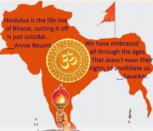 - ^ Gavin D. Flood (1996). An Introduction to Hinduism. Cambridge University Press. p. 262. ISBN 978-0-521-43878-0., Quote: "The party’s most vociferous leader was Vinayak Damodar Savarkar who made a distinction between ‘Hindu Dharma’, the religion of the various traditions, and ‘Hindutva’, the socio political force to unite all Hindus against foreign influences."