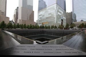 At the time of the September 11 attacks, Cantor Fitzgerald's offices occupied the 101–105th floors in the World Trade Center's North Tower, just above where a hijacked plane hit the building.[18][19] None of the employees who were in the Cantor offices that morning survived the attacks. In total, 658 of Cantor's 960 employees died that day,[20] including Lutnick's brother, Gary Lutnick.[18] Lutnick himself would have been in the office as well that morning, but on September 11 he was taking his son Kyle to his first day of kindergarten.[19][20] He tried, and failed, to reach the vicinity of the towers, hoping to find any Cantor staff members who had made it out alive. He survived the collapse of South Tower by taking cover under a car nearby.[21]