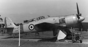 - Single-seat fighter version for the Royal Navy, 50 built by Hawker, an order for a further 300 placed at the same time to be built by Boulton Paul was cancelled. First production aircraft flew on 15 August 1946.[71][72]