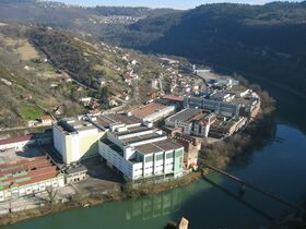 مصنع النسيج القديم Rhodiacéta على نهر دوب. المنظر من قلعة بزانسون