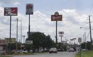 Neighboring fast food restaurant advertisement signs in Bowling Green, Kentucky