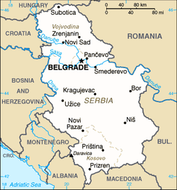 وحدة:Location map/data/Serbia is a location map definition used to overlay markers and labels on an equirectangular projection map of صربيا. The markers are placed by latitude and longitude coordinates on the default map or a similar map image.