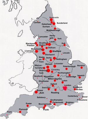 وحدة:Location map/data/UK England is a location map definition used to overlay markers and labels on an equirectangular projection map of إنگلترة. The markers are placed by latitude and longitude coordinates on the default map or a similar map image.