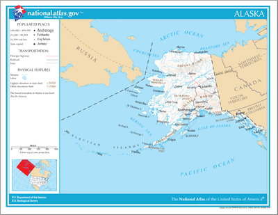 وحدة:Location map/data/USA Alaska is a location map definition used to overlay markers and labels on an equirectangular projection map of the U.S. state of Alaska. The markers are placed by latitude and longitude coordinates on the default map or a similar map image.