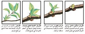 1- تكون البراعم متبادلة وحلزونية كما في نبات الدردار والزيزفون و التفاح.