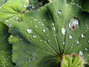 تتميز العديد من النباتات التي تنمو في المناطق الجافة، بأوراق سميكة تقـوم بخـزن المـاء. فنباتـات حي العالم الشبيهة بالحزازيات، والتي تنمو على السفوح الصخرية لها مثل هذه الأوراق. وشجرة المسافر التي تنمو في مدغشقر لها أوراق ضخمة تخزن كميات كبيرة من الماء في أعناقها المجوّفة. ويمكن للمسافرين الظمأى الحصول على شربة ماء بخرق قاعدة العنق.