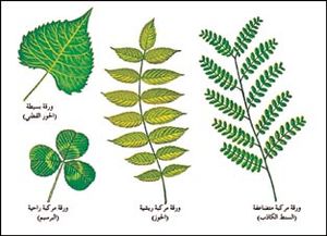 الأوراق البسيطة والمركبة. قد يكون للورقة نصل واحد أو أكثر. فإذا كان للورقة نصل واحد فقط تسمى ورقة بسيطة، أما الورقة التي لها أكثر من نصل فتعرف بالورقة المركبة. وتعرف أنصال الورقة المركبة بالوريقات. وقد يكون تنظيمها وتخطيطها راحيًا أو ريشيًا. وقليل من النباتات لها أوراق مركبة متضاعفة حيث تنقسم كل وريقة مرة أخرى إلى وريقات أصغر. عدد أنصال الورقة. قد يكون للورقة نصل واحد أو أكثر. والورقة التي لها نصل واحد تسمى ورقة بسيطة. وأشجار التفاح والبلوط ومختلف النجيليات وأنواع عديدة أخرى من النباتات لها أوراق بسيطة. أما الورقة التي لها أكثر من نصل فتسمى ورقة مركبة. وأنصال الورقة المركبة تسمى الوريقات.