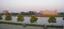 The region includes many rivers including the Grand River, Red Cedar River, Saginaw River, Tittabawassee River, Shiawassee River and Flint River. A drainage divide occurs in Central Michigan, causing the Grand River to flow west into Lake Michigan and the Saginaw River to empty into the Saginaw Bay. The terrain has rolling hills and plains with fertile soil. Agriculture dominates in the rural areas, where corn, soybeans, sugar beets, and hay are grown. The region has mostly small towns with a few cities of notable size. Most of the area is part of the Roman Catholic Diocese of Lansing or Roman Catholic Diocese of Saginaw.[6]