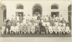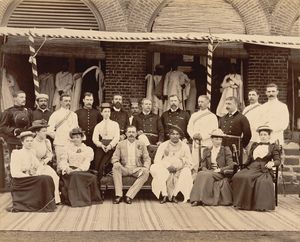 Photograph (1894) of the 19-year-old Shahaji II Bhonsle Maharajah of Kolhapur visiting the British resident and his staff at the Residency.