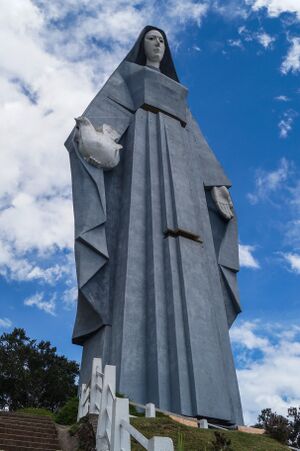 • Monument to the Virgin of the Peace: On the hill called Peña de la Virgen, is one of the most important religious tourist attractions in the state of Trujillo: the monument to the Virgin of Peace, the tallest sculpture in the Americas, work of the artist Manuel de la Fuente, inaugurated on December 21, 1993, being the president at that time Dr. Luis Herrera Campins.It is 46.72 meters high and weighs 1,200 tons. It consists of five viewpoints from which you can see the lake of Maracaibo. It is the tallest living monument in the Americas, surpassing the Statue of Liberty in the U.S. and Christ the Redeemer in Brazil. It is also the tallest sculpture dedicated to the Virgin Mary in the world.