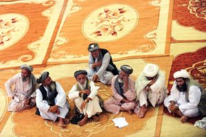 كبار القرية يحضرون مراسم تخرج أول وحدة شرطة محلية أفغانية في بالا بولوك.