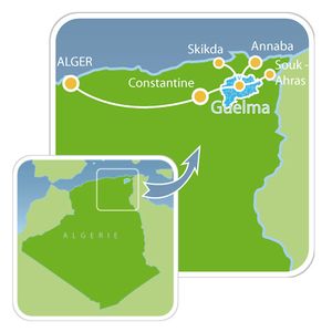 ![]() خريطة الجزائر تبين ولاية قالمة | |