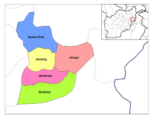 ![]() خريطة أفغانستان موضح عليها موقع ولاية لغمان. | |