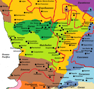 Home to Uto-Aztecan indigenous peoples such as the Huichol and Cora, the region was exposed to the conquistadores Hernán Cortés and Nuño de Guzmán in the 16th century. Spanish governance was made difficult by indigenous rebellions and by the inhospitable terrain of the Sierra del Nayar. The last independent Cora communities were subjugated in 1722. The state's name recalls the Cora people's label for themselves: Náayerite, commemorating Nayar, a resistance leader.[8]