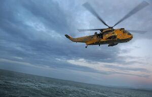 William's first rescue mission as co-pilot of an RAF Sea King was a response to an emergency call from Liverpool Coastguard on 2 October 2010.[60] In November 2011, he participated in a search-and-rescue mission involving a cargo ship that was sinking in the Irish Sea; William, as a co-pilot, helped rescue two sailors.[61]
