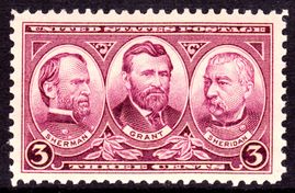 صورة من 1888، تصوير ناپوليون ساروني استخدمت في الطبعة الثانية من مذكرات شرمان 1889. تستخدم هذه الصورة ايضاً كنموذج لنقش طابع شرمان الأول الذي صدر عام 1893.