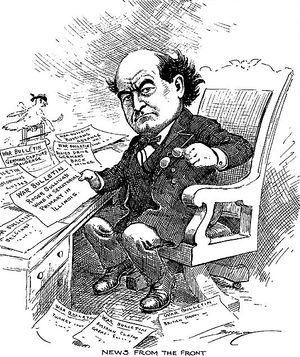 10. ^ source Joseph Keppler in Puck (magazine) Sept 19, 1906; reprinted in: Smylie, James H. "William Jennings Bryan and the Cartoonists: A Pictorial Lampoon, 1896—1925". Journal of Presbyterian History 53.2 (1975): 83–92 at p 88 online.