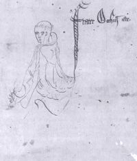 William of Ockham - Sketch labelled "frater Occham iste", from a manuscript of Ockham's Summa Logicae, 1341