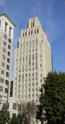 In 1929, the Reynolds Building was completed in Winston-Salem. Designed by William F. Lamb from the architectural firm Shreve, Lamb and Harmon, the Reynolds Building is a 314-قدم (96 m) skyscraper that has 21 floors.[22][23] When completed as the headquarters of R.J. Reynolds Tobacco Company, it was the tallest building in the United States south of Baltimore, Maryland, and it was named the best building of the year by the American Institute of Architects.[24] The building is well known for being the predecessor and prototype for the much larger Empire State Building, which was built in 1931 in New York City.[25]