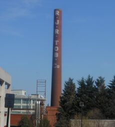 In 1917, the Reynolds company bought 84 acre (340،000 m2) of property in Winston-Salem and built 180 houses that it sold at cost to workers, to form a development called "Reynoldstown".[18] By the time R.J. Reynolds died in 1918, his company owned 121 buildings in Winston-Salem.[18]
