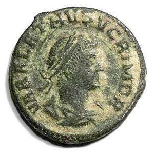 Initially the Roman emperor Aurelian recognized Vaballathus' rule, perhaps because Aurelian was engaged in a major conflict with the Gallic Empire in the west and hesitated to incite open warfare with the Palmyrene Empire. This mutual recognition is testified by early coins issued by Zenobia under Vaballathus's name, but also acknowledging Aurelian as emperor. In the coins, Aurelian is shown wearing a radiate crown that signifies his supremacy as emperor, while Vaballathus is crowned with a laurel wreath.[4] The Alexandrian minted coins showed Aurelian in his first year and Vaballathus in his fourth year[5] with Vaballathus adopting honorary titles possibly inherited from his father Odaenathus. Although the Palmyrene Empire was centred in Palmyra, Vaballathus and Zenobia probably spent most of their reign in Antioch,[6] Syria's administrative capital.[7] The relationship between the Roman Empire and the newly established Palmyrene empire deteriorated, and a series of Palmyrene conquests, carried out under the protective show of subordination to Rome,[8] began around 270.