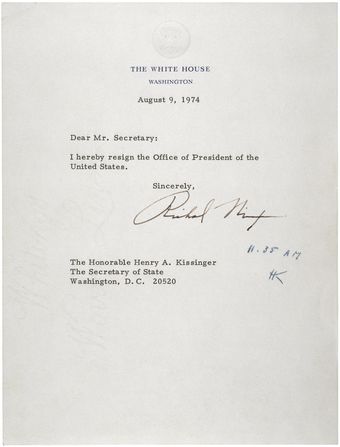 واستقال على أثر ذلك الرئيس في أغسطس 1974. تمت محاكمته بسسب الفضيحة. في 8 سبتمبر 1974 أصدر الرئيس الأمريكي جيرالد فورد عفواً بحق ريتشارد نيكسون بشأن الفضيحة.