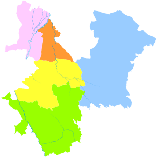 Wuzhong city is long from east to west and narrow from north to south. The topography is high in the south and low in the north, with Yinchuan plain in the north and Qingtongxia plain and hilly land in the south. The river plains have an average elevation of 1100 meters, the southern area an elevation of 1300–1900 meters. The city's area consists of parts of the Loess Plateau, Ordos Plateau, Yellow River alluvial plains and mountains. The northern two counties are mostly alluvial plains, the east is located on the Ordos Plateau and includes part of the Maowusu Desert. The southern area is located partially on the Ordos Plateau and partially on the loess plateau.[8]