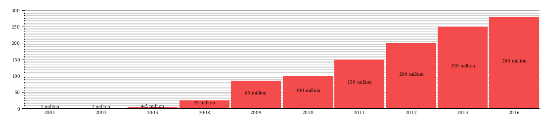 Estimate of daily number of queries on Yandex Search by year[79][80][81][82][83]