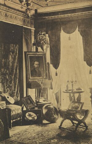 After graduation in 1859,[15] Matejko received a scholarship to study with Hermann Anschütz at the Academy of Fine Arts, Munich.[14] The following year he received a further scholarship to study at the Academy of Fine Arts Vienna, but after only a few days and a major quarrel with Christian Ruben, Matejko returned to Kraków.[16] He set up a studio at his family home in Floriańska Street.[16] It took years before he met with commercial success. He struggled as the proverbial "starving artist", who finally celebrated when he managed to sell the Shuyski Tsars... canvas for five florins.[2]