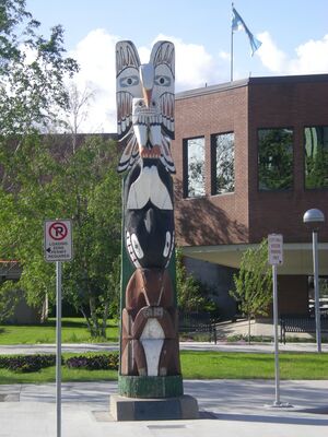 Yellowknife has a municipal government system and is governed by the Yellowknife City Council, which consists of an elected mayor and eight councillors.[44] The Government of the Northwest Territories delegates powers to the municipality through legislative acts and regulations. Council meetings are held in the Council Chambers at City Hall on the second and fourth Monday of each month, and are open to the public. Municipal elections are held every three years.[45] The current mayor of Yellowknife is Rebecca Alty, who succeeded Mark Heyck in 2018.[46] Alty was elected 16 October 2018 and was sworn in 5 November.[3]