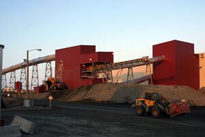 After a downturn in the 1990s during the closure of the gold mines and the downsizing of the government workforce in 1999, Yellowknife's economy has recovered, largely because of the diamond boom;[53] the Ekati Diamond Mine, owned and operated by BHP Billiton (sold to Dominion Diamond Corporation in 2013), opened in 1998.[54] A second mine, Diavik Diamond Mine, began production in 2003.[55] Production from the two operating mines in 2004 was 12،618،000 carat (2،523.6 kg; 5،563.6 lb), valued at over CA$2٫1 billion. This ranked Canada third in world diamond production by value, and sixth by weight. A third mine, the De Beers owned Snap Lake Diamond Mine, received final approval and funding in 2005 and went into production in 2007.[56] De Beers also applied in 2005 for a permit to open the Gahcho Kue Diamond Mine Project on the property formerly known as Kennady Lake. The mine was officially opened on 20 September 2016, and began commercial production in March 2017.[57] As well, growth and expansion in natural gas development and exploration sectors has contributed to this growth. Economic growth in the Northwest Territories was 10.6% in 2003.[58]