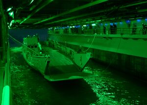 Well deck dimensions | 266-في-50-قدم (81 في 15.2 m) by 28-قدم (8.5 m) high |