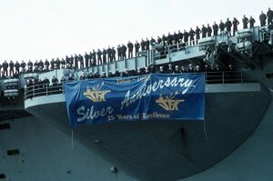 تم إرسال حاملة الطائرات يو اس اس جون كينيدي (CV-67) إلى البحر المتوسط للتعامل مع مشاكل الشرق الأوسط وقتها. وخلال فترة السبعينات تم تطويرها لتتحمل طائرتي إف-14 توم كات وإس-3 ڤايكنگ على ظهرها.