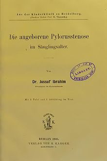 16. ^ أ ب "Jussuf Ibrahim: Anmerkungen zu seinem wissenschaftlichen Schrifttum". Monatsschrift Kinderheilkunde. Springer-Verlag: 1000-1003. 2002. doi:10.1007/s00112-002-0522-z. ISSN 0026-9298.