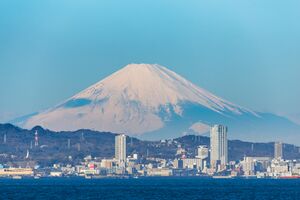 ![]() منظر جبل فوجي ووسط يوكوسوكا، من يبدو من قناة أوراگا |