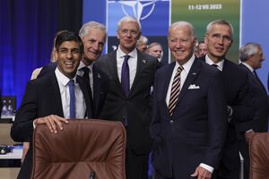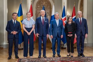 Støre with U.S. President Joe Biden and other Nordic leaders in Helsinki, July 2023
