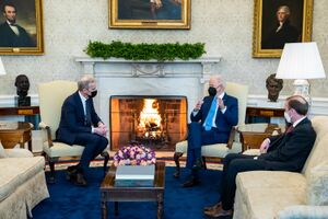 Støre with U.S. President Joe Biden and Jake Sullivan in January 2022