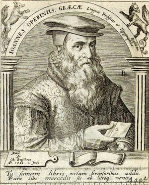 يوهانس اوپورينوس Johannes Oporinus نقش، من صنع تيودور ده بري. | |