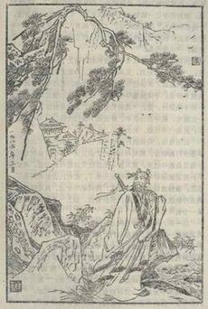 Yue Fei (الصينية: 岳飛; March 24, 1103 – January 28, 1142),[1] courtesy name Pengju (鵬舉), was a Chinese military general who lived during the Southern Song dynasty and a national hero of China, known for leading Southern Song forces in the wars in the 12th century between Southern Song and the Jurchen-ruled Jin dynasty in northern China. Because of his warlike-stance, he was put to death by the Southern Song government in 1142 under a concocted charge, after a negotiated peace was achieved with the Jurchens.[2] Yue Fei is depicted in the Wu Shuang Pu (無雙譜, Table of Peerless Heroes) by Jin Guliang.