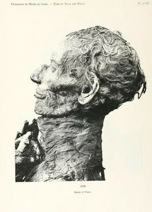 They may also have been the parents of Ay,[6] an Egyptian courtier active during the reign of Akhenaten, who eventually became pharaoh as Kheperkheprure Ay. There is no conclusive evidence, however, regarding the kinship of Yuya and Ay, although certainly both men came from the town of Akhmim.[7]