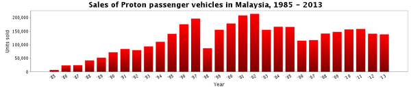 - ^ "Sales of Proton passenger vehicles in Malaysia, 1985 – 2013". 29 January 2014. Retrieved 29 January 2014.