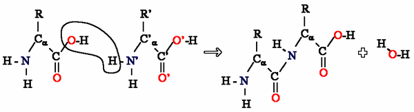 Amino acids can be taken as examples of single monomer (if the difference between R groups is ignored) reacting with identical molecules to form a polyamide: