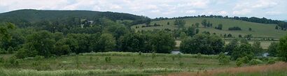 The James River winds its way among rolling Piedmont hills in central Virginia, though most hills in the Piedmont region are smaller than these.
