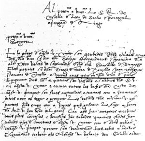 «إنّ المذكور كريستوفر كلومبس، قبل أن يذهب للتفاوض مع الملوك الكاثوليك بشأن ذلك الاكتشاف، قدم إلى هذه بلدة بالوس… ومرّ بدير لا رابيدا، وكان يأتي من هناك أحيانًا إلى هذه البلدة ويتحدّث مع رجل يُدعى پيرو ڤاسكِس دي لا فرونتيرا، وكان رجلًا بالغ الحكمة في فنّ الملاحة، وقد سبق له أن ذهب مرة للقيام بذلك الاكتشاف مع أمير البرتغال…»...