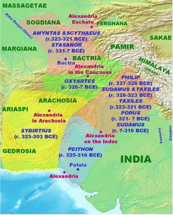 مد چاندراگوپتا حدود امبراطوريته نحو بلاد فارس السلوقية بعد صراعه مع سلوقس حوالي 305 ق.م.