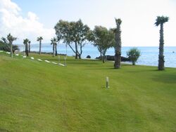 In relation to tourism, it is common for the resorts along Çeşme district's 90 km coastline to be called by the name of their beaches or coves or the visitor's facilities and attractions they offer, as in Şifne (Ilıca), famous both for its thermal baths and beach, and in Çiftlikköy (Çatalazmak), Dalyanköy, Reisdere (also spelled Reis Dere), Küçükliman, Paşalimanı, Ayayorgi, Kocakarı, Kum, Mavi and Pırlanta beaches; Altunyunus, synonymous with a large hotel located in its cove; and Tursite, by the name of the villas located there. Some of these localities may not be shown on a map of administrative divisions[10] The district area as a whole is one of the spots in Turkey where foreign purchases of real estate are concentrated at the highest levels.