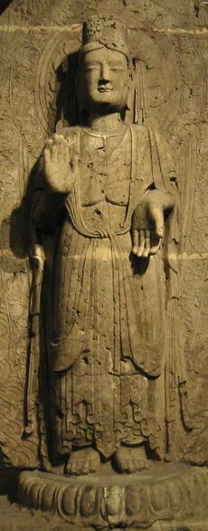 Markedly unique from earlier depictions of the Buddha, Northern Qi statues tend to be smaller, around three feet tall, and columnar in shape.[19]