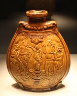 Also, brown glazed wares designed with Sasanian-style figures have been found in these tombs.[14] These works suggest a strong cosmopolitanism and intense exchanges with Western Asia, which are also visible in metalworks and relief sculptures across China during this period.[14] Cosmopolitanism was therefore already current during the Northern Qi period in the 6th century, even before the advent of the notoriously cosmopolitan Tang dynasty, and was often associated with Buddhism.[14][21]