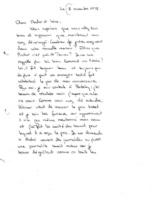 رسائل من ديزي دوسوا في 1978 تعرب فيها عن إحباطها من عدم الاعتراف بأبحاثها مما أدى إلى حصول ڤرنر أربر على جائزة نوبل.